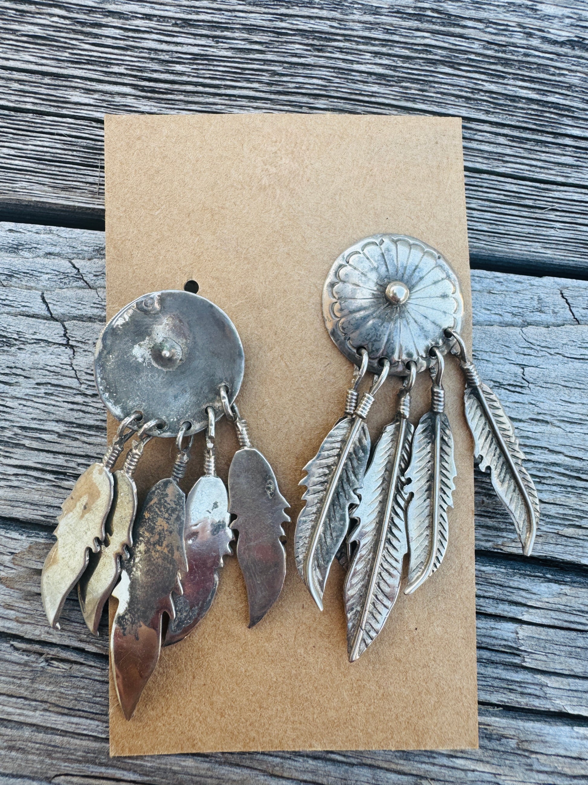 Vintage Sterling Silver Dream Catcher Feather Earrings